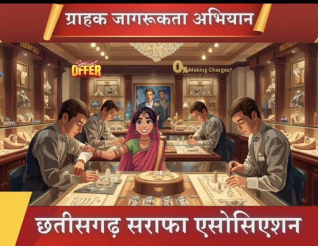 जरिएउपभोक्ताओं कोभ्रमित कर रहीहैं, जिससे आमजनता काविश्वास औरछोटे पारंपरिक सर्राफाकारोबारियों कीप्रतिष्ठा प्रभावितहो रही है।उन्होंने बताया कि त्योहारी सीजन की शुरुआत के साथ ही छत्तीसगढ़ सर्राफा एसोसिएशन ने एक व्यापक ग्राहक जागरूकता अभियान प्रारंभ किया है। इस अभियान का उद्देश्य उपभोक्ताओं को झूठे ऑफरों और भ्रामक विज्ञापनों से सावधान करना है।